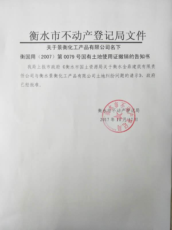 日前,景衡化工產(chǎn)品有限公司利用單方面違法辦理的土地證,要求廢除金鼎集團(tuán)安裝分公司職工生產(chǎn)、生活用房的房產(chǎn)證。在有些部門不作為、亂作為的情況下,安裝公司職工只好到信訪局要求廢除景衡化工違法土地證。衡水市信訪局副局長吳小松親自接訪,在了解情況后積極與土地部門進(jìn)行溝通。衡水市國土資源局在接到通知后,迅速作出反映,嚴(yán)格按照程序依法做出撤銷景衡土地證的決定。目前,市有關(guān)領(lǐng)導(dǎo)已經(jīng)做出了同意撤銷《衡國用(2007)第0079號國有土地使用證》的批復(fù)。